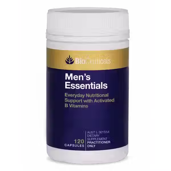 Men's Essentials provides a comprehensive blend of vitamins, minerals and active B vitamins and supports general health and wellbeing. Vitamins B2, B3, B5, B6 and B12 relieve stress and fatigue. Vitamin C, D and Zinc support healthy immune system function. Selenium supports sperm production, and zinc maintains testosterone levels and cognitive function.